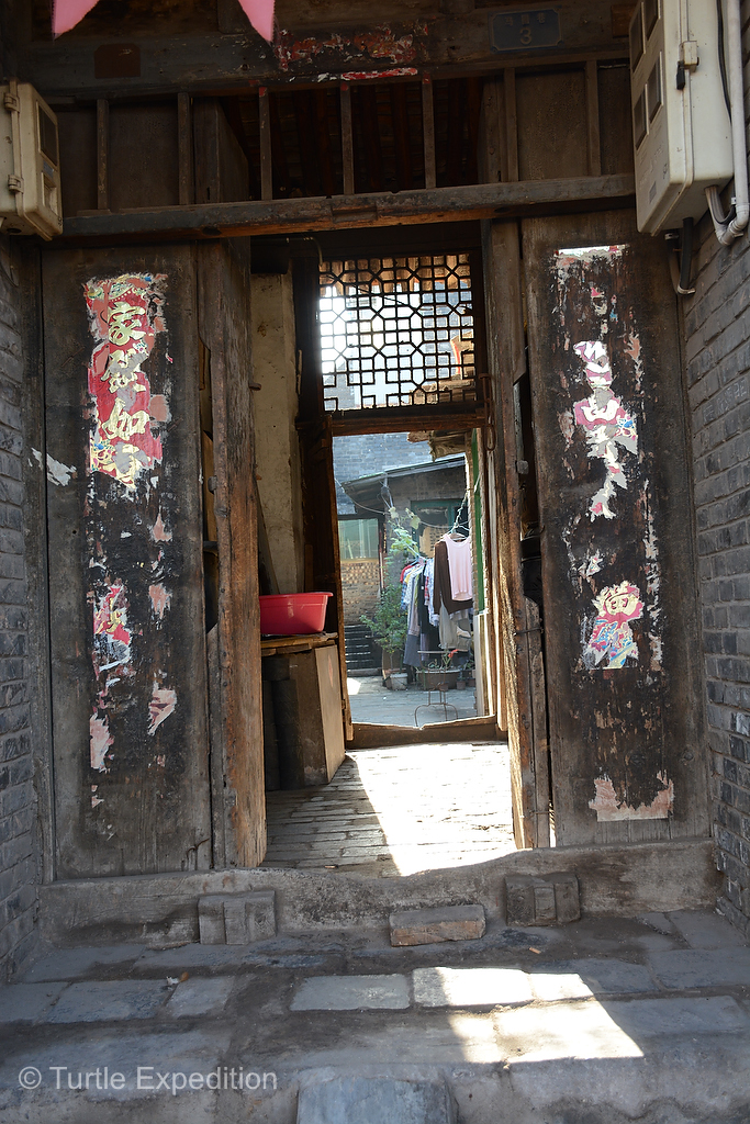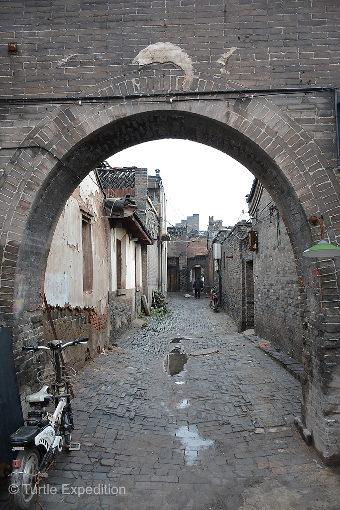 OK, Pingyáo was not on our list of “must see” places as we traveled across China. At the time, our primary Lonely Planet China guide book did not even mention it, but once again our personal guide, Green, knew better. To our pleasure and amazement, Pingyáo is China’s best-preserved ancient walled city. Moreover, it is not some made-up tourist attraction. Thousands of local residents live here, down narrow alleys and behind creaking wooden doors that lead into courtyards where laundry was hung to dry, bicycles leaned against ancient rock walls and locals gossiped in the sun.