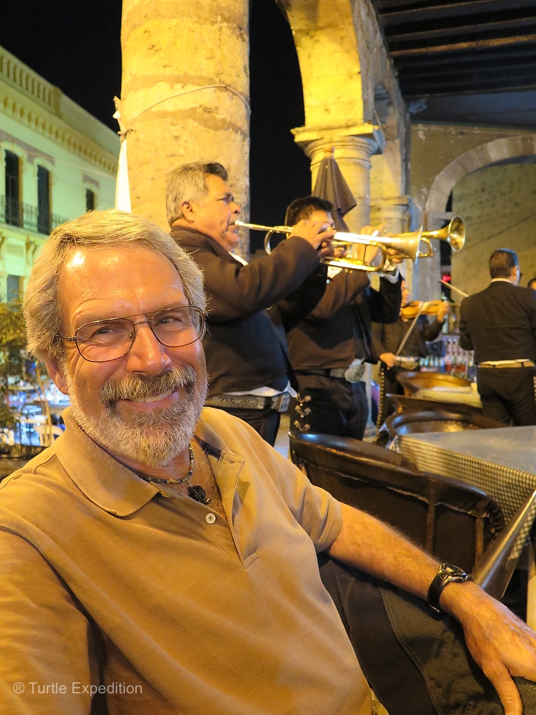 After a quick walk around the Plaza, Monika discovered a group that was one of the best; 3 guitars, 2 bases, 2 violins, a little Requinto and 2 trumpets. All the guys wore the classic Mariachi outfits, which told us that they were a unified group and practiced together. When they found out that it was my birthday they immediately broke into Las Mañanitas, the beautiful Mexican birthday song. I had a few requests of favorites and they knew all but one. After a second cold Corona I could even remember the words to a couple of them.
