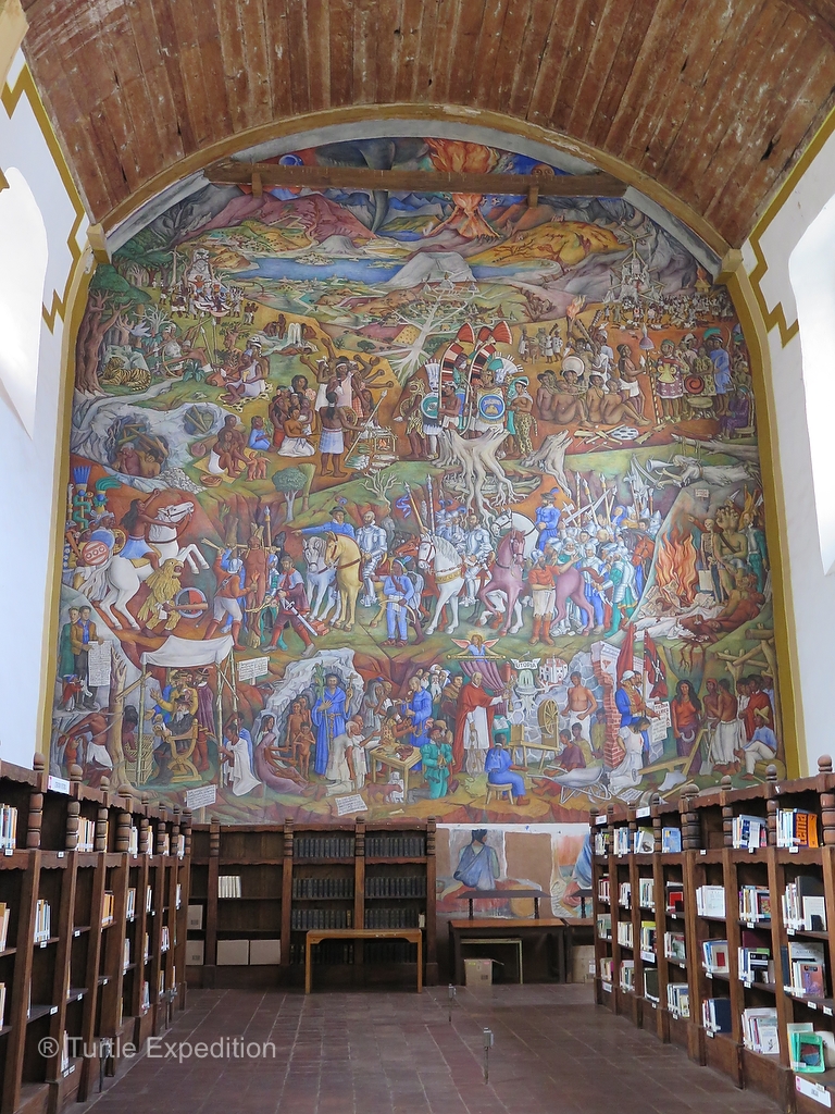 - Filling the arched north wall of the Public Library there is a magnificent Juan O’Gorman mural titled “The History of Michoacán”, completed in 1942.