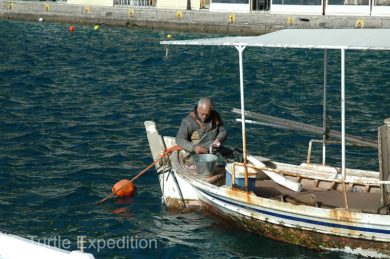 It was late afternoon so our goal was simply to find a safe parking place for the night and take a deep breath of Mediterranean air. Spotting the small fishing village Monastiraki from the highway, we took a chance and wound our way down to the shore where we found the perfect, flat, quiet parking spot right next to the fishing docks. It was a secret we had learned many years ago. Little harbors always have flat places for fishermen to park their trucks and trailers. There is often fresh water nearby and a beautiful view in the morning.