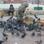 - Even in freezing temperatures, locals still took time to feed the pigeons in the plaza.