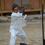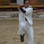 In talking with Nam Hee-Jong we discovered that he was a member of the Traditional Military Honor Guard who protects the president and performs official duties. This sector of the Korean military practices four disciplines: bow & arrow, various swords, fist & kick and riding horses. He offered to show us some of his talents. The swords he twirled as he leaped and danced in the demonstration courtyard were razor sharp.