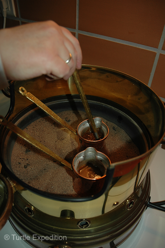 - A staff member at the Greek Olive and Olive Oil museum made us a batch of traditional Greek Coffee. It was a very interesting