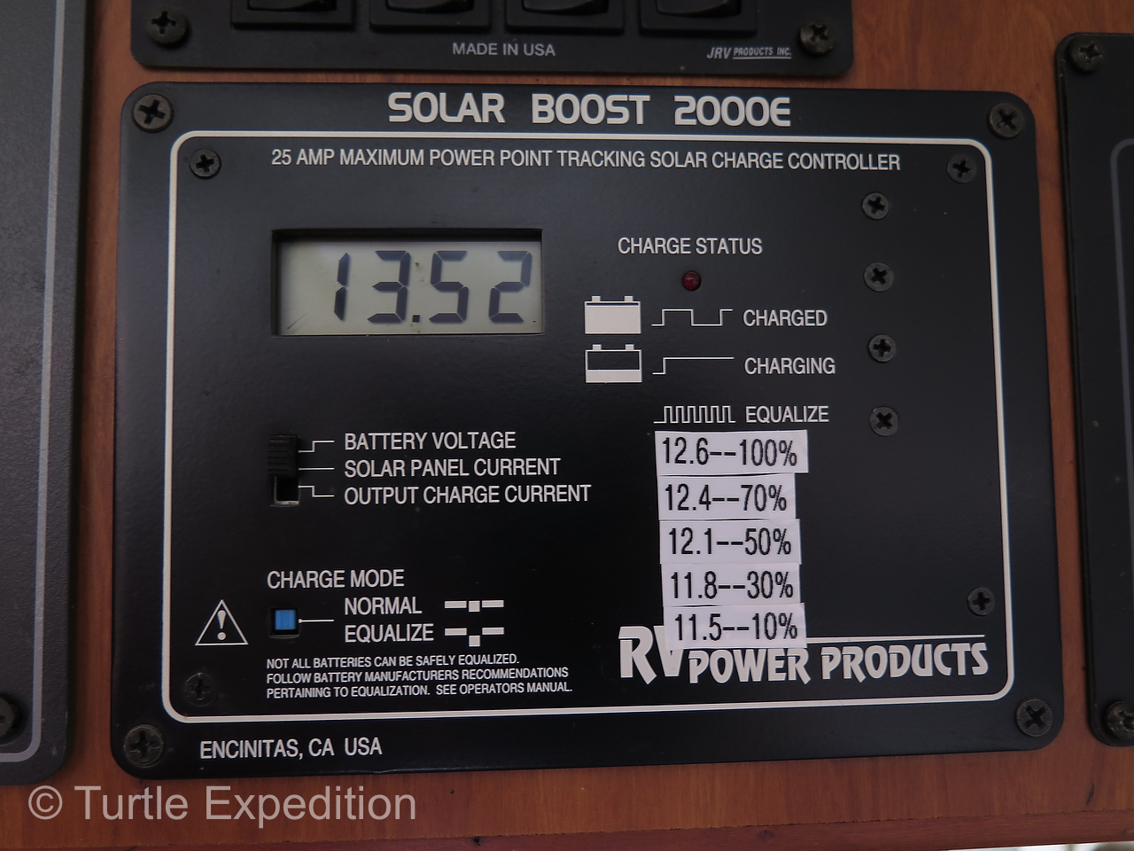 The Xantrex Link 10 shows us the current charge on our battery system and exactly how many amp hours we have left based on current use.